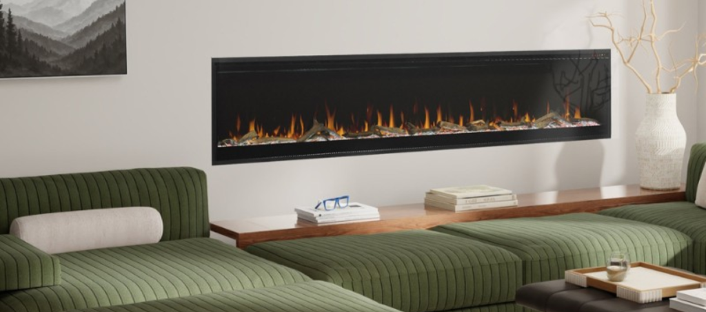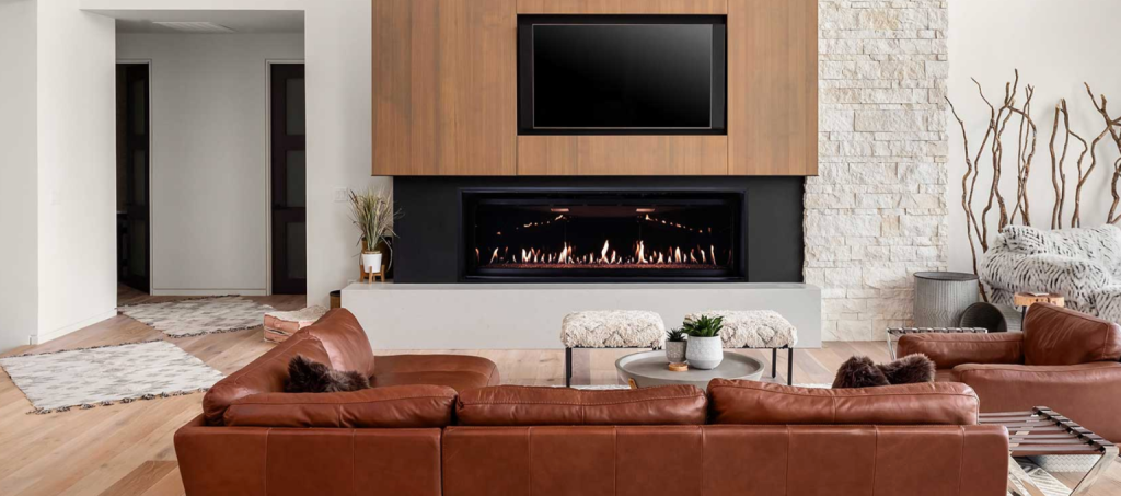 Gas fireplaces frequently feature linear models, ideal for making a bold architectural statement in living rooms or open spaces. Brands like Town & Country, Archgard, and Kozy Heat blend stylish designs with high energy efficiency, providing a good mix of looks and functionality.