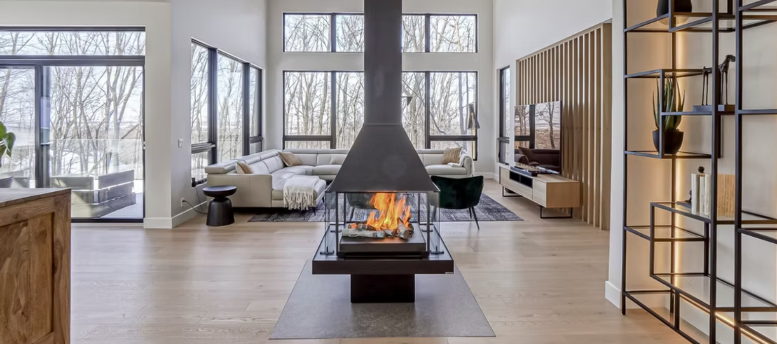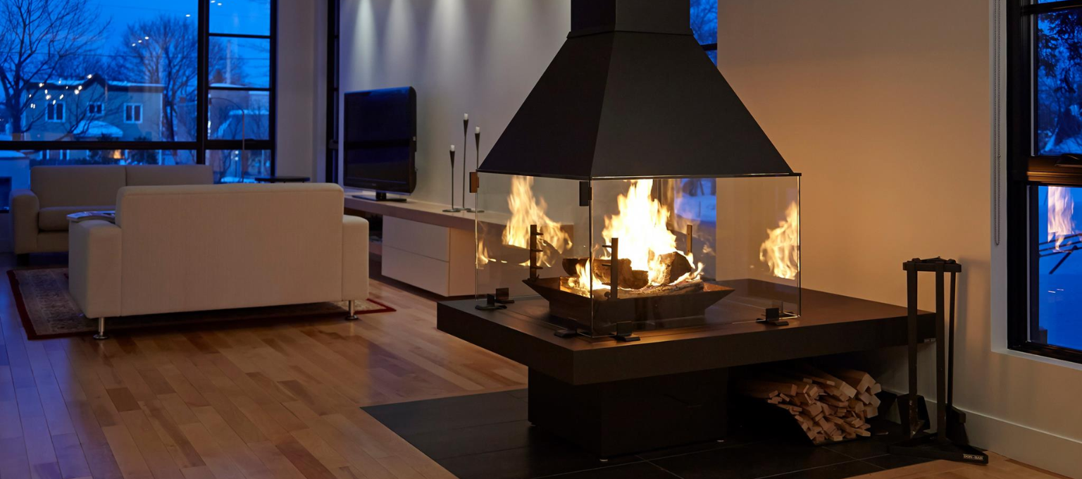 Other contemporary wood fireplaces, such as those from Don-Bar, feature impressive construction and offer spectacular 360-degree views of the fire.